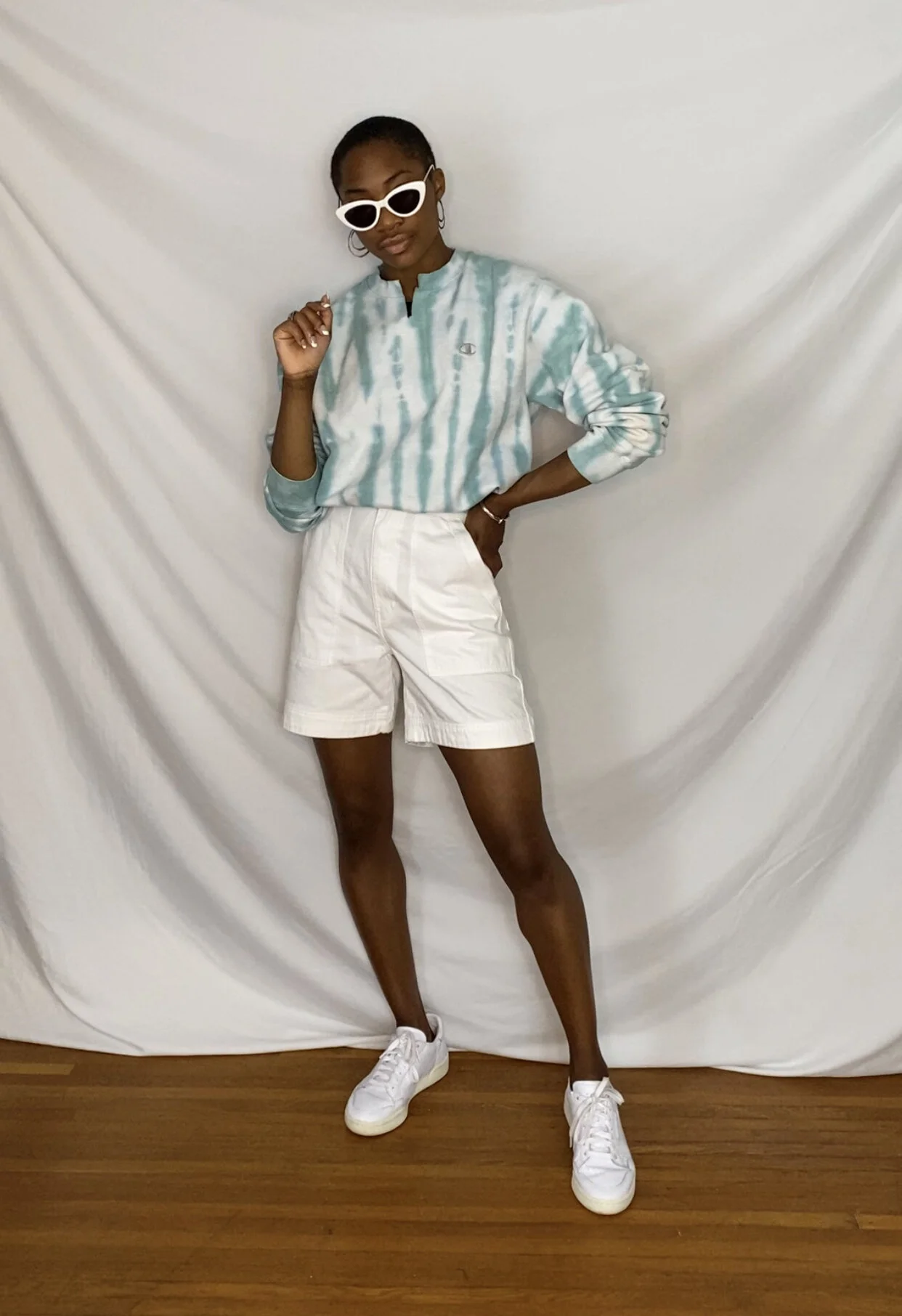To finish off the look, I added some simple silver accessories and a pair of white sunglasses. The 90s, suburban mom vibe is in full force with this one. I dig it.
