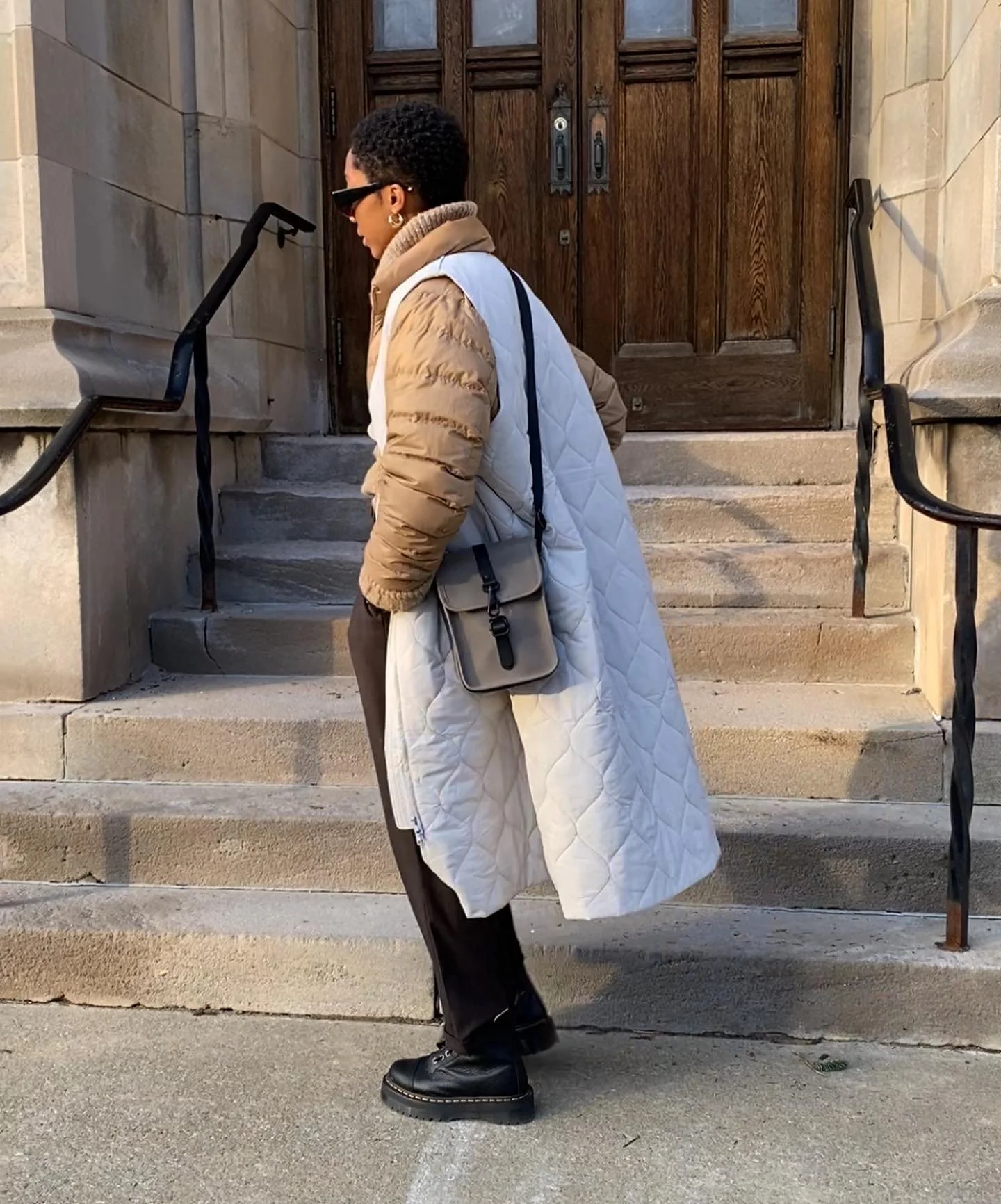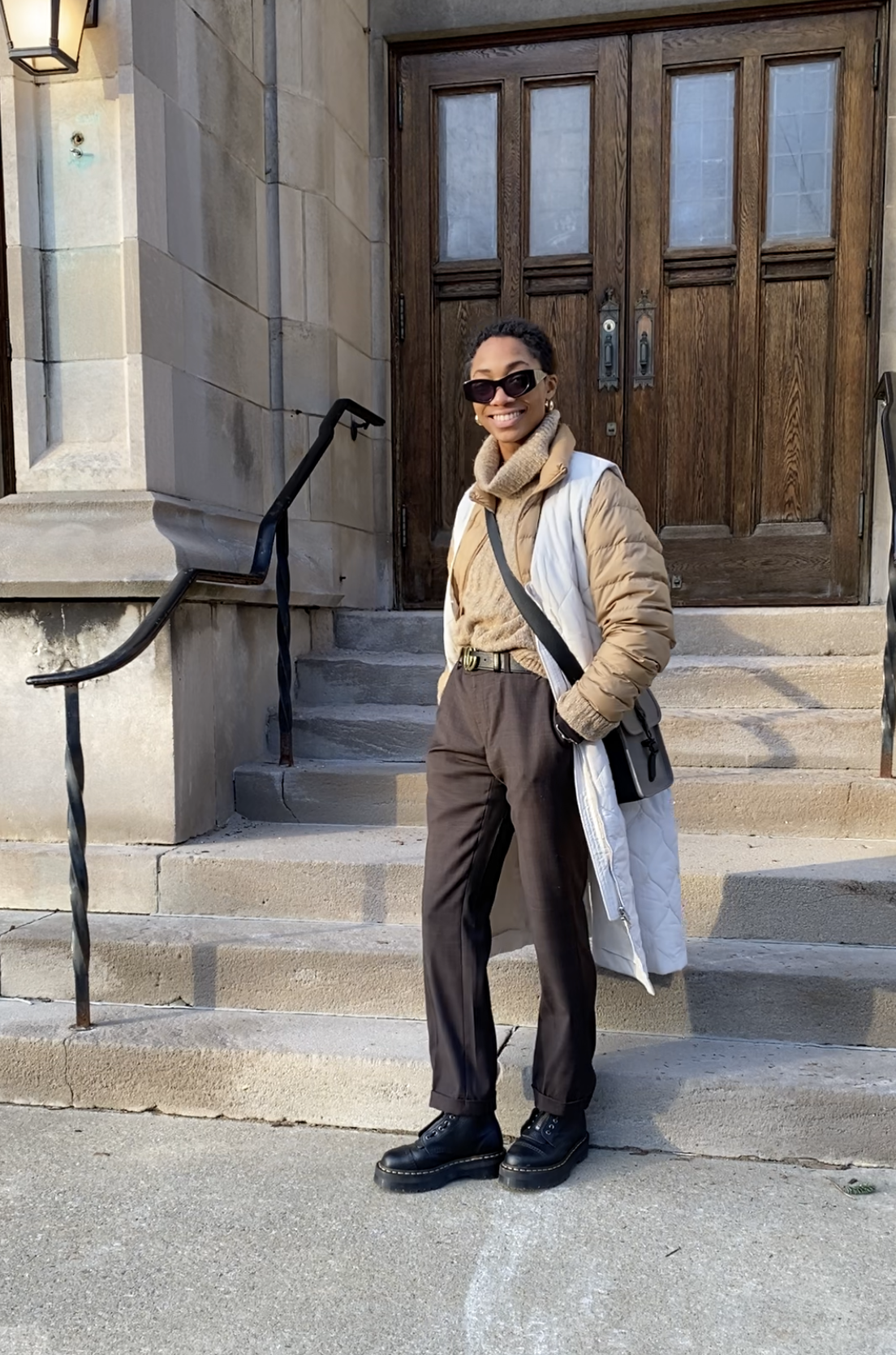 The idea from this look started with this COS quilted puffer vest, courtesy of my mother. I loved the shape and texture of the piece and decided to make it the focal point of this look. I stuck with a brown and beige color palette to create an easy tonal look that’s perfect for fall and winter