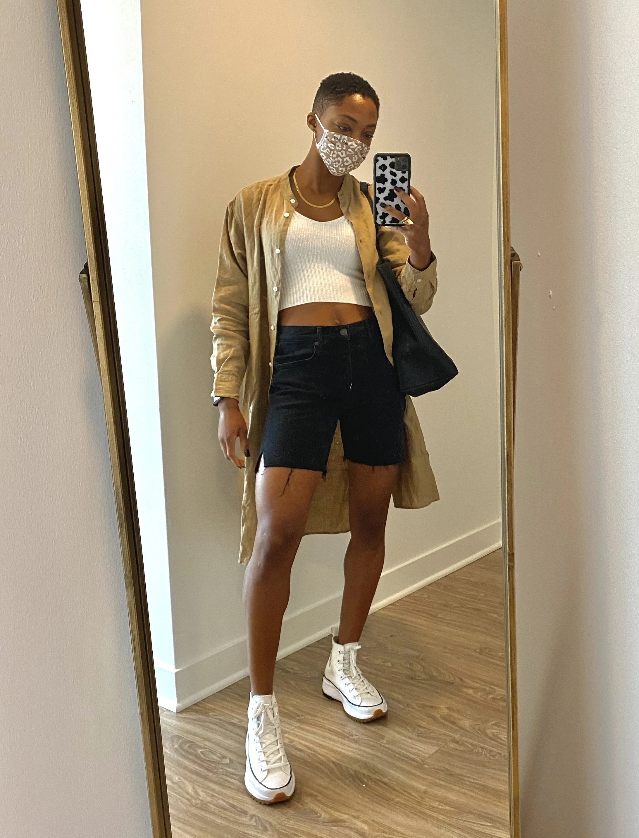 September 3rd in the new digs | Free People Camisole, Madewell denim shorts, Converse Run Star Hike Sneakers, Gap Button-Down Shirt