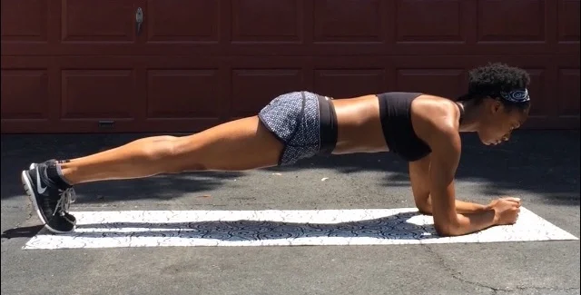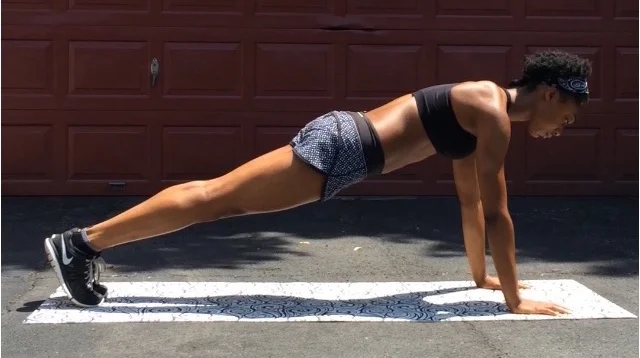 I like to start by activating my core to wake up the muscles and get the blood circulating through that area. Begin with a set of hundreds and really focus on scooping your belly in and up towards your ribs. After that comes a series of planks: 1 minute plank on the forearms, 30 second side plank on each side and a 1 minute plank in push up position.